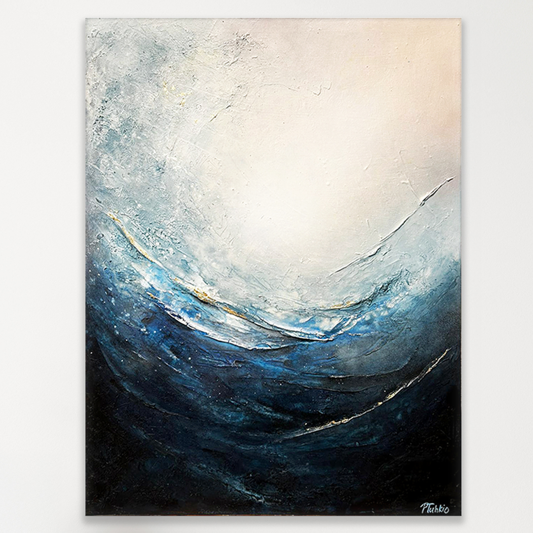 Hiili- ja lyijy, akryylimaali, lyöntihopea